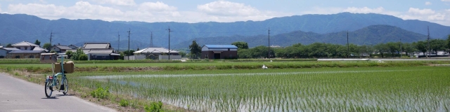 琴平駅で輪行を解除し、観音寺駅へ向けてサイクリングを開始。6月上旬は田植え直後でもあり、青空が水田に写りこむ景色はなんとも爽やかです。