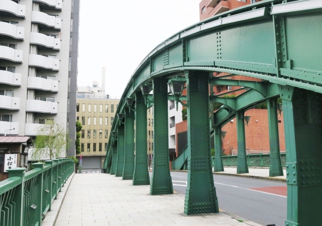 神田川が隅田川に合流する手前に架かるハコミおすすめの柳橋。南岸は中央区東日本橋、北岸は台東区柳橋という区境の小さな橋です。